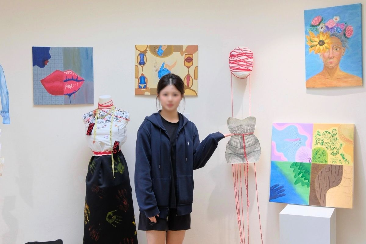Guided by the IB philosophy, students integrated personal experiences with a global perspective, engaging in continuous creative practice and critical inquiry. Through diverse mediums—from intricate paintings to compelling installations—each artwork conveyed a distinct narrative, inviting the audience into the students’ individual artistic journeys.