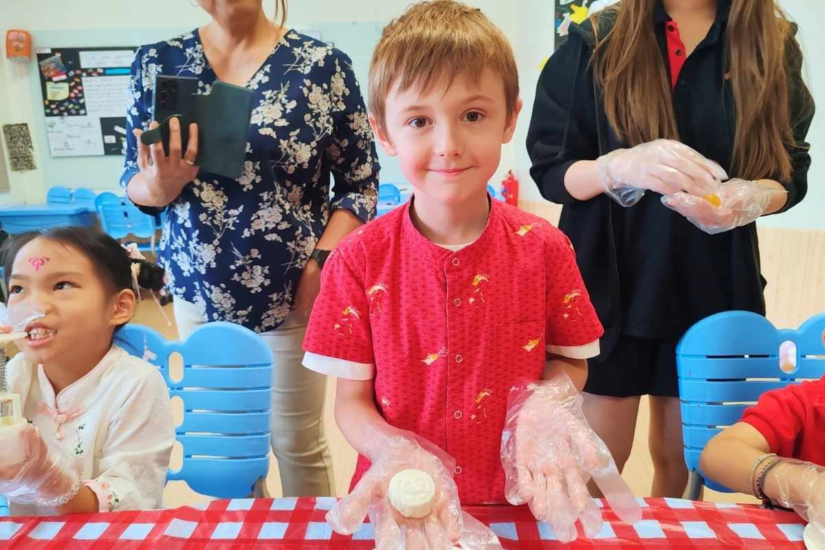 The event featured a wide range of engaging activities, including mooncake making, traditional sachet crafting, face painting, and festive indoor games. Laughter and creativity filled the campus as students immersed themselves in the festive spirit, strengthening friendships and building deeper connections with teachers. Many students arrived in traditional Chinese attire, further adding to the colorful and celebratory atmosphere.