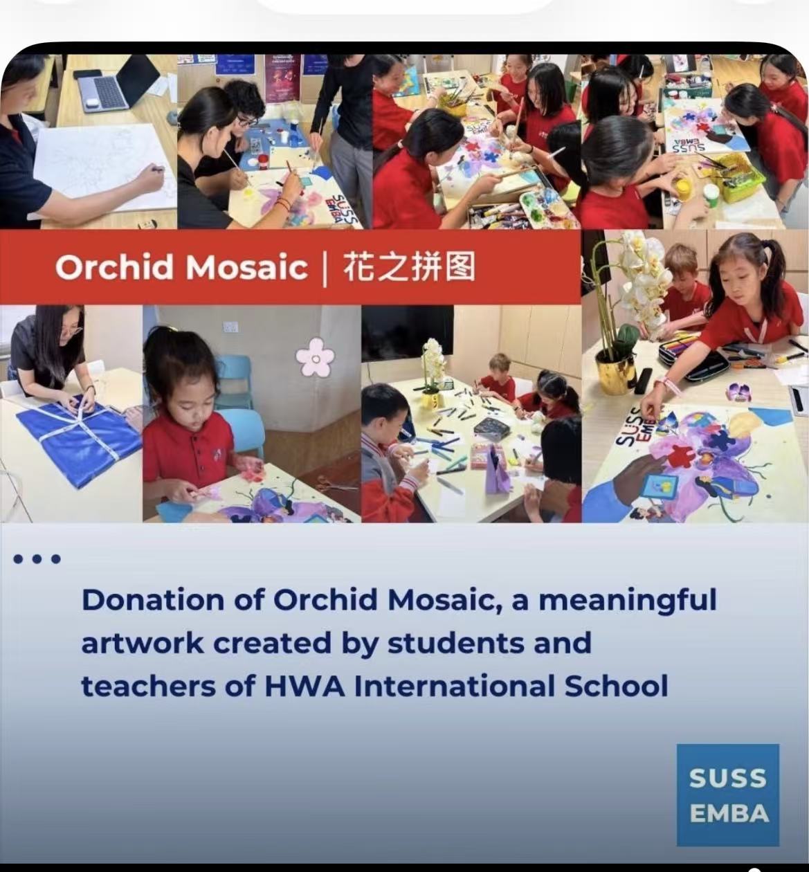近日,HWA国际学校的师生们以艺术为媒介,向新加坡社科大学 SUSS 捐赠并呈献了艺术作品《Orchid Mosaic》。这份凝聚创意与心意的礼物,承载着感恩、连接与共同使命,也象征着教育社群之间真诚而长远的伙伴关系。